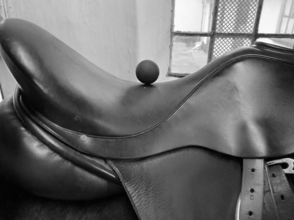 Pointen med testen er at tjekke, om bolden finder sig til rette midt på sadlen. Gør den det, så er sadlen i balance.