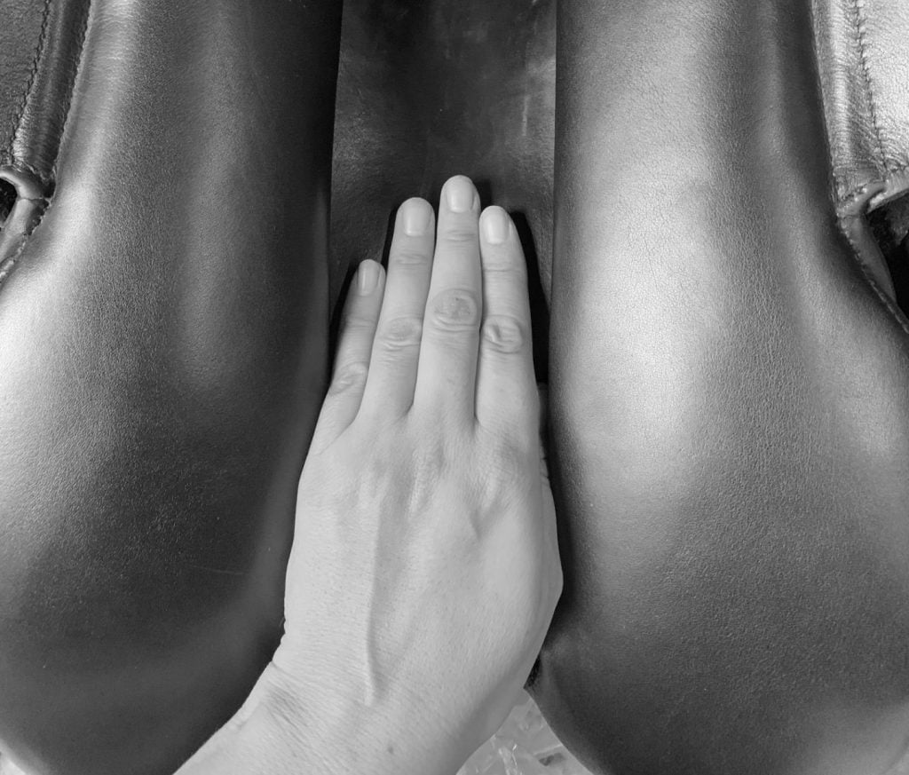 Når du lader hånden glide ned under sadlen, er det vigtigt at du mærker efter såkaldte lufthuller, hvor sadlens paneler ikke har kontakt med ryggen.