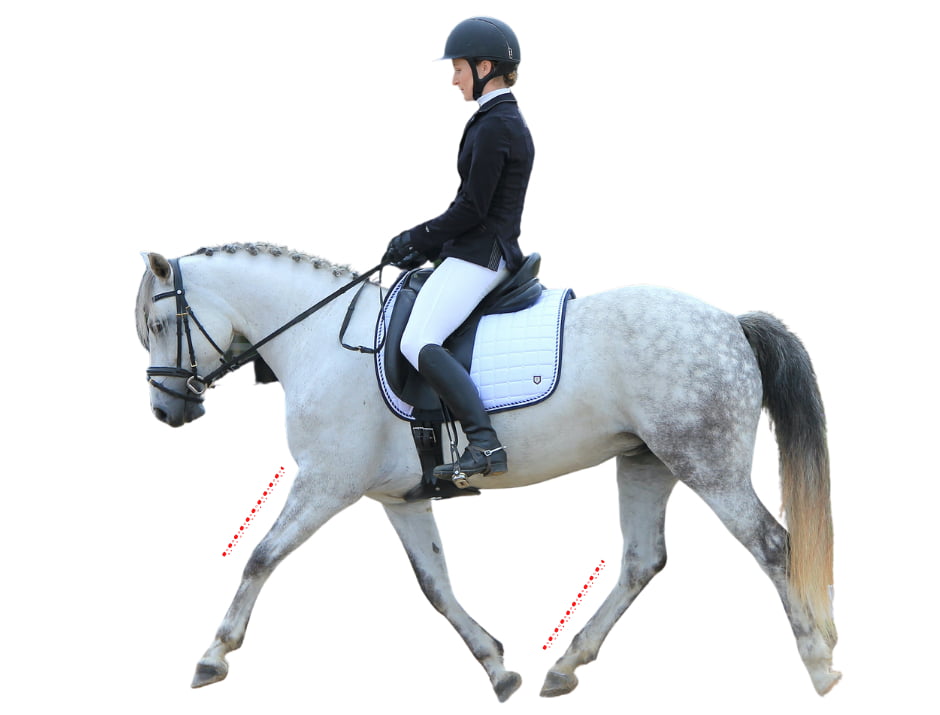 Benenes position afslører kroppens holdning. Kort fortalt bør den øverste del af forbenet være parallel med den nederste del af bagbenet, når hesten bevæger sig. Her indtager kroppen en sund og balanceret holdning.