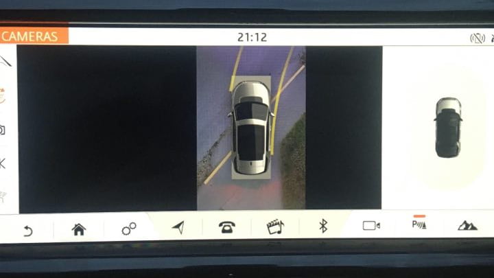 Foruden bak- og frontkamera, sidder der også kameraer på siden af og under bilen, ligesom du kan se din bils positionering på vejen oppefra. Kameraet under bilen kan vise dig, hvordan terrænet er, mens de andre for eksempel kan hjælpe dig med at komme forbi en anden bilist på en smal vej eller bakke uden at støde ind i noget. På billederne herunder kan du se et udpluk af kameravisningerne i bilen og hvordan de giver dig et unikt synsfelt 360 grader rundt om bilen.