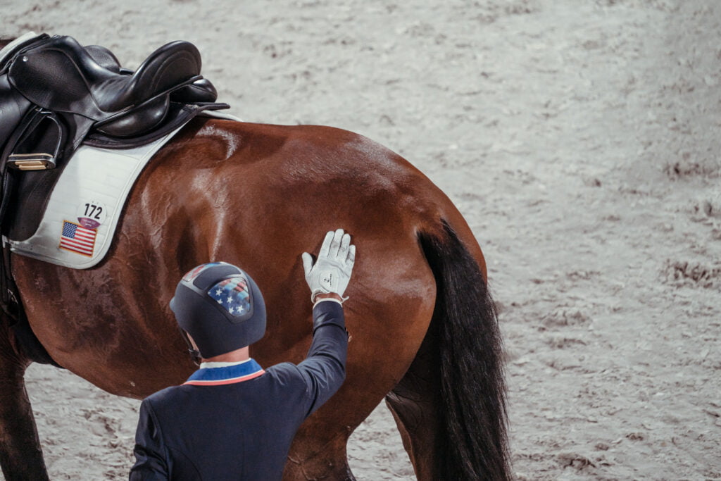 Alle de dygtige ryttere, der har kæmpet om medaljerne de sidste dage, viser en masse kærlighed og taknemmelighed overfor deres heste, og det er de fleste af rytterne, der giver hesten lidt kærlighed efter et ridt.