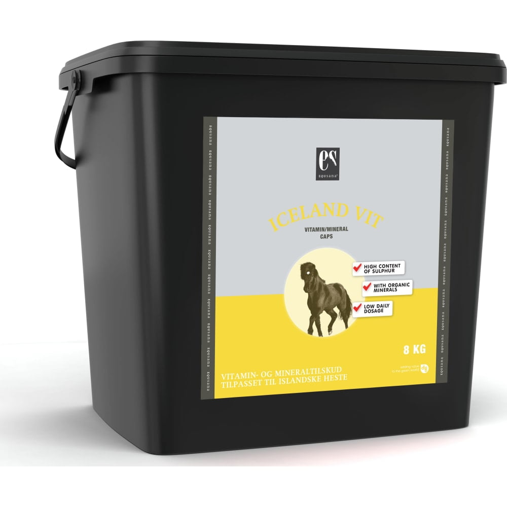 Denne Iceland Vit er en vitamin- og mineralblanding optimeret til den islandske hest og andre racer med meget man og hale samt hovskæg. Vitaminerne og mineralerne er bundet i grønmel, og produktet tilfører derfor minimalt med stivelse og sukker. Blandingen dækker allround med alle vitaminer og mineraler og har et særligt højt indhold af organisk zink, kobber og mangan. Disse mineraler er vigtige for at kunne opretholde et sundt immunforsvar, og de kan understøtte en sund hud og pels. Kan købes for 299,00 kr.