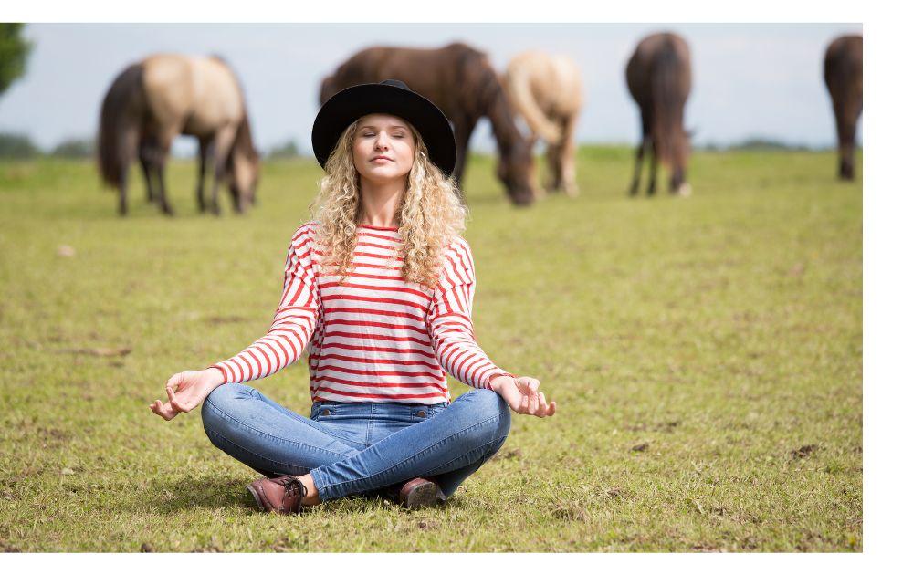 “Hvis du lander i stalden med hovedet fyldt med tanker om alt det du skal nå, alt det der skal ordnes derhjemme, eller noget der fylder på arbejde, så er der allerede her et stort lag af signaler du sender ud til din hest. Hesten kan ikke skelne imellem de tanker du tænker, der vedrører noget der er sket tidligere, det der sker nu, eller de tanker du har liggende ude i fremtiden. Derfor er det en stor fordel at sætte bare et minut af til at lande godt i stalden enten i bilen, på cyklen eller i sadelrummet, inden du henter din hest. Din vejrtrækning er en direkte genvej til at lande i nuet, det man i yogaens verden kalder Pranayama.”