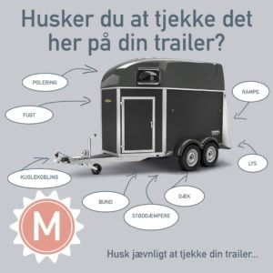 Hvis du har en trailer, der er helt i orden, vil der være større sandsynlighed for, at det bliver en god tur for dig og din hest, fortæller Allan. Mange heste har desværre fået dårlige oplevelser med at køre i trailer, hvor fejlen ofte har ligget i, at bunden har været glat, og hesten derfor er skredet i forbindelse med aflæsning, eller at støddæmperne har været rustne, og at kørslen derfor har været meget ubehagelig for den. Husk derfor at bruge tid på at gennemgå din trailer og rengør den grundigt. Allan understreger dog, at et forårstjek ikke kan erstatte det årlige syn hos en fagperson, men at det kan være et godt supplement, der gør, at din trailer kan holde mange år endnu…